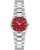 Drawing inspiration from the incredible Bulova Super Seville of the 1970s, the Super Seville Mini delivers classic aesthetics for timeless appeal. With versatility for every wardrobe, the 25mm stainless steel case impresses with a seamless silhouette transitioning into the matching integrated 3-link stainless steel bracelet, which features a push-button deployant clasp. An elegant, grooved coin edge bezel enhances the case and surrounds a flat sapphire crystal. Iridescent and mesmerizing, a red mother-of-pearl dial is appointed with polished /silver-tone hands and indices. Embrace an effortless elegance with the women’s Bulova Super Seville Mini.