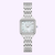 Timeless design meets modern flair with the Bulova ladies’ Classic Sutton Square. A graceful accent to any ensemble, the petite silver-tone stainless steel case has a soft square silhouette with a gem-set bezel with 36 1mm sparkling diamonds and a crown set with a blue cabochon. White mother-of-pearl provides an iridescent foundation for the time, which is indicated by polished dauphine hands and applied hour markers set upon an engaging translucent pattern. With a matching seven-row bracelet, this Bulova women’s timepiece is an essential part of every wardrobe.