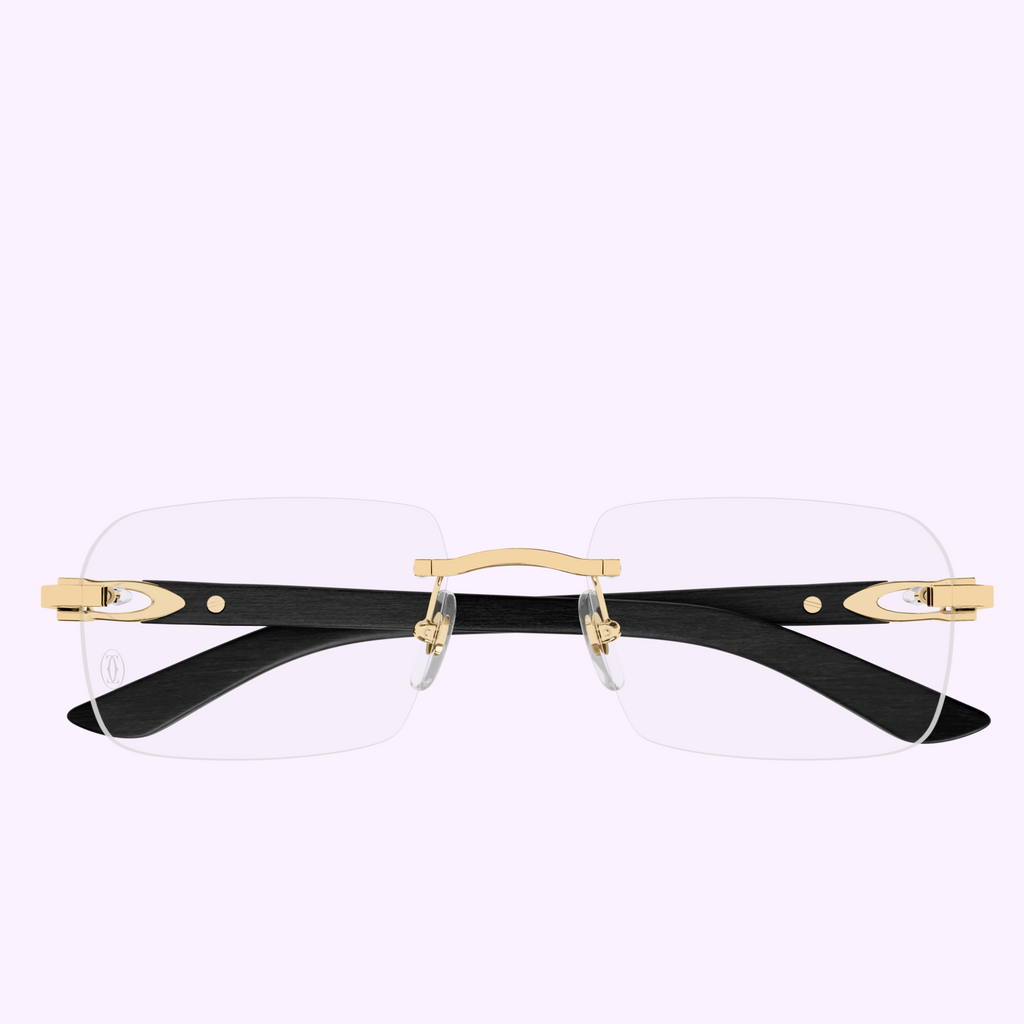 Contemporary and sophisticated temples in wood or horn enriched with the iconic Décor C detail as a functional element of the hinge. Classic and easy-to-wear rectangular shape in rimless construction to ensure a modern yet elegant look. Cartier logo plaque on temple tips as elegant signature of the Maison. Precious finish in gold or platinum.