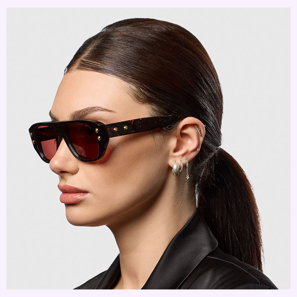 RHYTHX features an unapologetically structured silhouette—oversized, architectural, and refined. Its sculptural navigator shape is crafted from high-density acetate, paired with a distinctive step-down temple design. Proprietary cone hardware punctuates the frame, including DITA’s exclusive 5-barrel hinge plate adorned with pressed line details and hand-applied enamel.