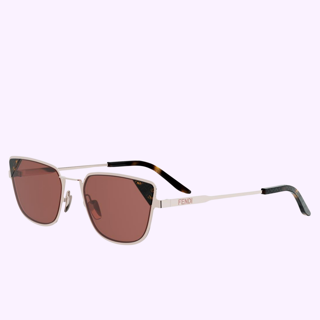 Reinterpretation in modern key of a vintage Fendi metal style in a rectangular shape. Unique construction with FF havana acetate inserts on corner of lenses, matching the acetate temple tips. Elegant Fendi touch through the understated Fendi logo and FF havana pattern.
