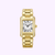 The seamless lines and elegant polished case reveal a classical white dial showcasing intricate “clous de Paris” decoration and traditional Roman numeral indexes. The case also features 34 diamonds (0.4 carat). The carrée design of the smooth polished case perfectly blends and embellishes the feminine wrist for a flawless taylor-made match.