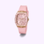 The newest Sparkling Pink watch is polished yet striking. We’ve taken our signature silhouette and sized it down without losing any of the bold details you love. This 42 mm x 35 mm rectangular rose gold tone recycled steel case features a light pink multi-function sunray dial with an innovative pink bio-based nylon overlay and has 30 meters water resistance. The textured soft pink silicone strap completes the look that makes a statement while supporting an important cause - a radiant accessory with a charitable heart.