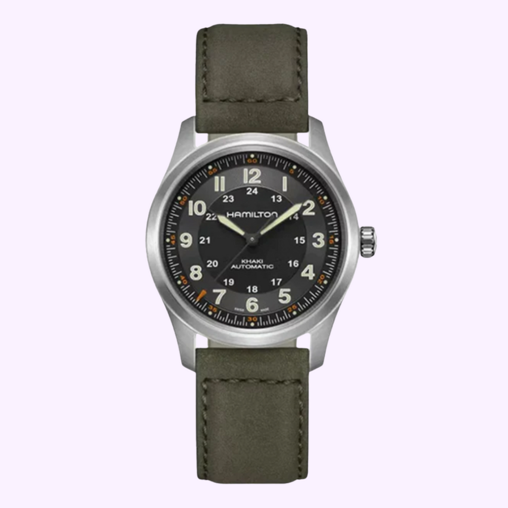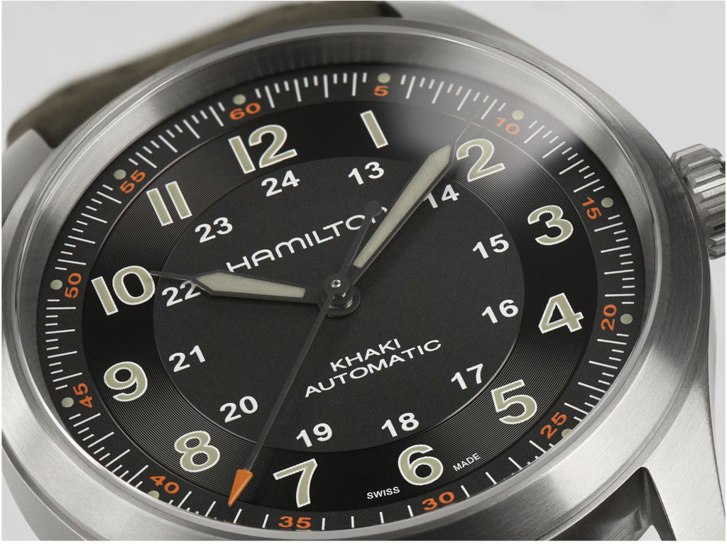Un siglo de tradición en relojes militares combinado con materiales livianos hacen del Khaki Field Titanium Automatic el reloj multiuso definitivo para los héroes modernos. Perfectamente apto para la vida en el campo, el tamaño de la caja de 38 mm acentúa la comodidad y la adaptabilidad con un diseño históricamente auténtico.