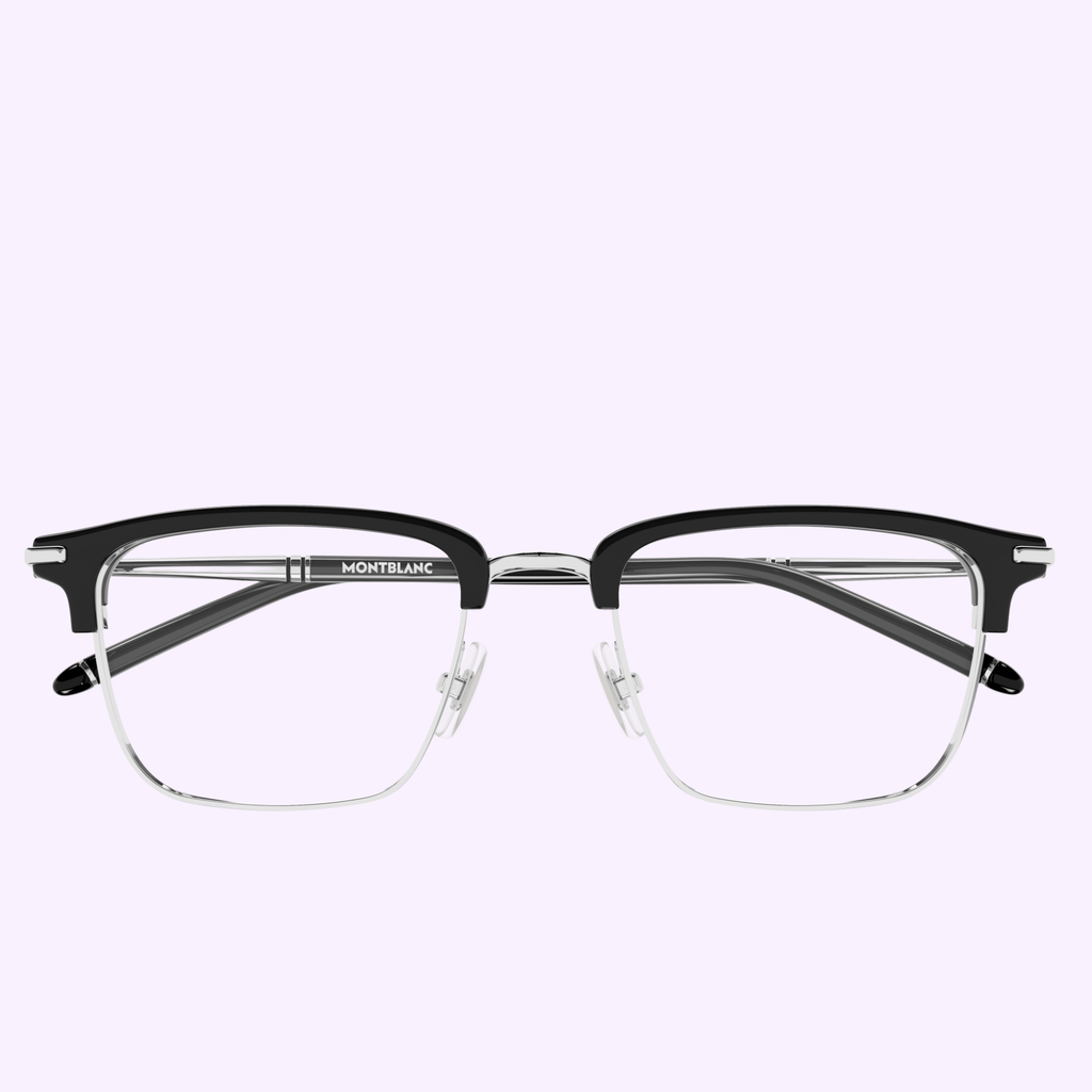 Rimless optical style part of the Meisterstück pillar and aimed at celebrating Meisterstück Anniversary with a new family inspired by writing instruments. The temple’s silhouette is inspired by the signature shape of Meisterstück writing instruments. The iconic branding element is represented by the metal ring on temples featuring Montblanc lettering logo and a more subtle metal ring on temple tips. The color palette features Montblanc's classic black, a dark petrol and a new grey.