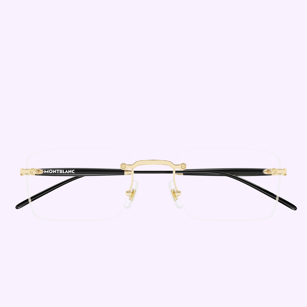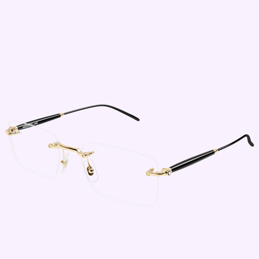 Rimless optical style part of the Meisterstück pillar and aimed at celebrating Meisterstück Anniversary with a new family inspired by writing instruments. The temple’s silhouette is inspired by the signature shape of Meisterstück writing instruments. The iconic branding element is represented by the metal ring on temples featuring Montblanc lettering logo and a more subtle metal ring on temple tips. The color palette features Montblanc's classic black, a dark petrol and a new grey.