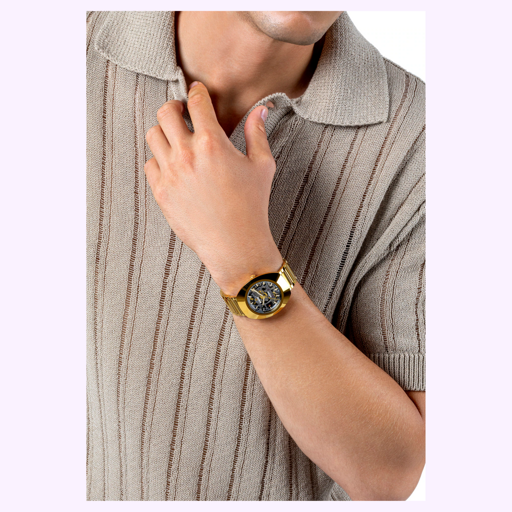 The DiaStar Original Skeleton features another variant of the high-quality R808 automatic calibre, anthracite-grey coated and complemented by various elements in its workings, for a lovely visual dance of contrasts. Thanks to sapphire crystal windows on both front and back, the automatic movement can be appreciated in full technical elegance, providing 80 hours of power reserve. An anti-magnetic Nivachron™ hairspring ensures that everything stays extremely precise and reliable, in a movement that has been tested in a full five positions. Its open structure, and the impressive R808 skeleton movement give a lighter, airier note to the new DiaStar Original, a perfect design counterpoint inside the visual frame created by the polished yellow gold coloured Ceramos™ bezel. The darker tone is further set off by floating yellow gold coloured indexes and hands with white Super-LumiNova®, for great readability even in low-light conditions.