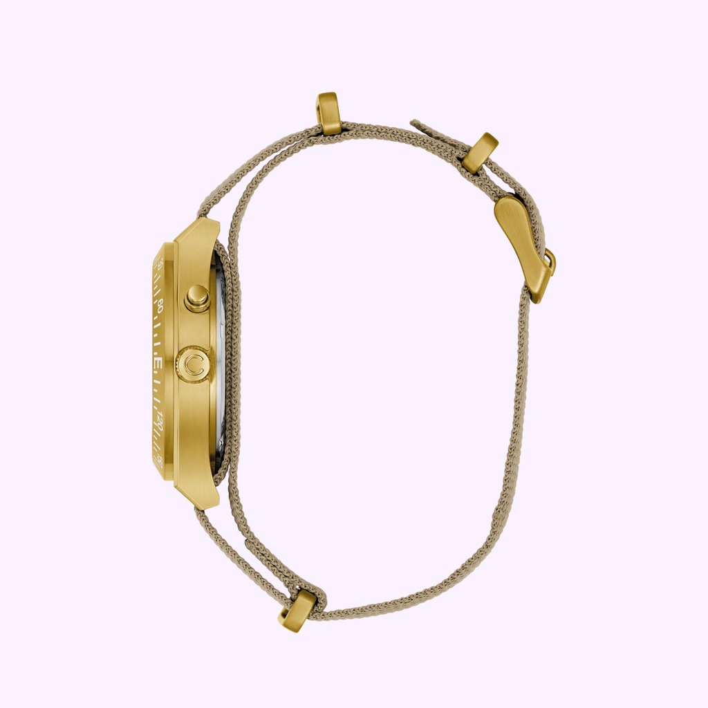 Bulova Taupe Dial Nylon Strap Light Up Carevelle 44C113 Watches 042429606319