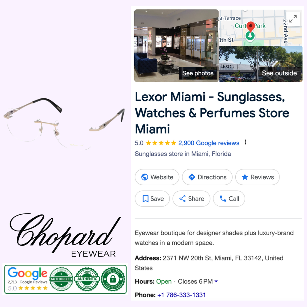 Chopard Eyeglasses. Color: Demo Lens. Shape: Cat Eye. Lens Width: 53 mm. Lens Bridge: 16 mm. Arm Length: 140 mm. Frame Material: Metal. Frame Color: Rose Gold Tone. Rim Style: Rimless. UPC/EAN code: 883663932648. Chopard Unisex Rimless Eyeglasses VCHB71S-0E66-53..Lexor Miami Sunglasses&