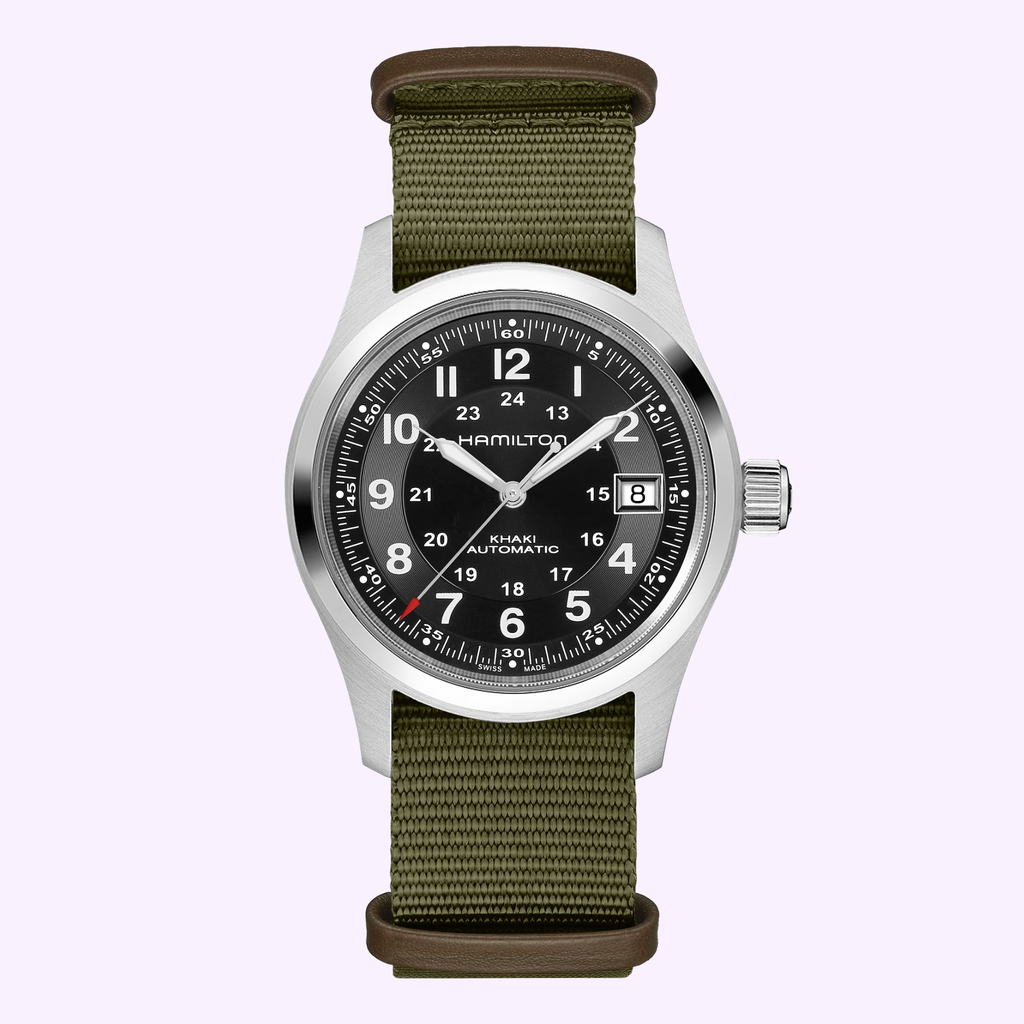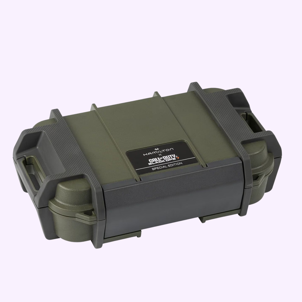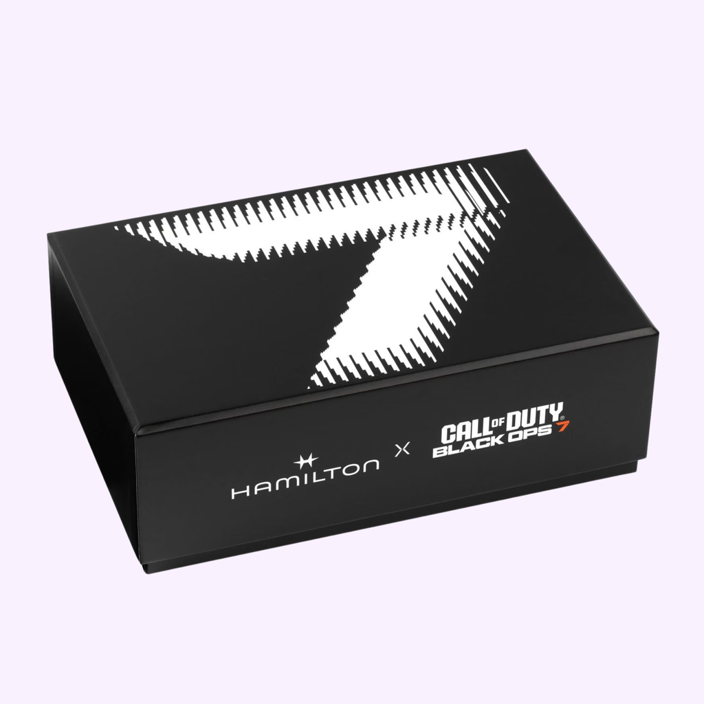 Discover the limited edition Khaki Field Automatic 38mm, as we continue to push what’s possible at the intersection of watchmaking, creativity and storytelling and collaborate with “Call of Duty: Black Ops 7”. Worn by Axel Vermaak in the game, The rugged, Swiss-made timepiece features a stainless steel case, black dial with multi-textured finishings and Super-LumiNova®-coated hands for low-light visibility. A durable khaki green NATO strap reinforces its tactical edge, while the H-10 automatic movement delivers an 80-hour power reserve, prepared for any mission. Limited to only 5,000 pieces, the commemorative edition includes a caseback engraved with the “Call of Duty” insignia and exclusive packaging.