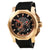 • Orefici ORM2C4810 Gladiatore chronograph men's watch features a 48mm wide and 17mm thick rose gold ion plated solid stainless steel case with a fixed bezel and a textured screw down crown with function pushers. Orefici ORM2C4810 is powered by an accurate quartz chronograph movement. This stylish watch also features a perforated black dial with red accents rose gold tone luminous skeleton hands and index hour markers along with the chronograph, 12/24-hour time and date display functions, scratch resistant mineral crystal and water resistant to 100 meters. Orefici ORM2C4810 is equipped with a 23mm black rubber strap with a buckle clasp. Orefici ORM2C4810 men's Gladiatore black dial black rubber strap chrono watch is brand new and comes in an original Orefici gift box and is backed by a 2 years store warranty.