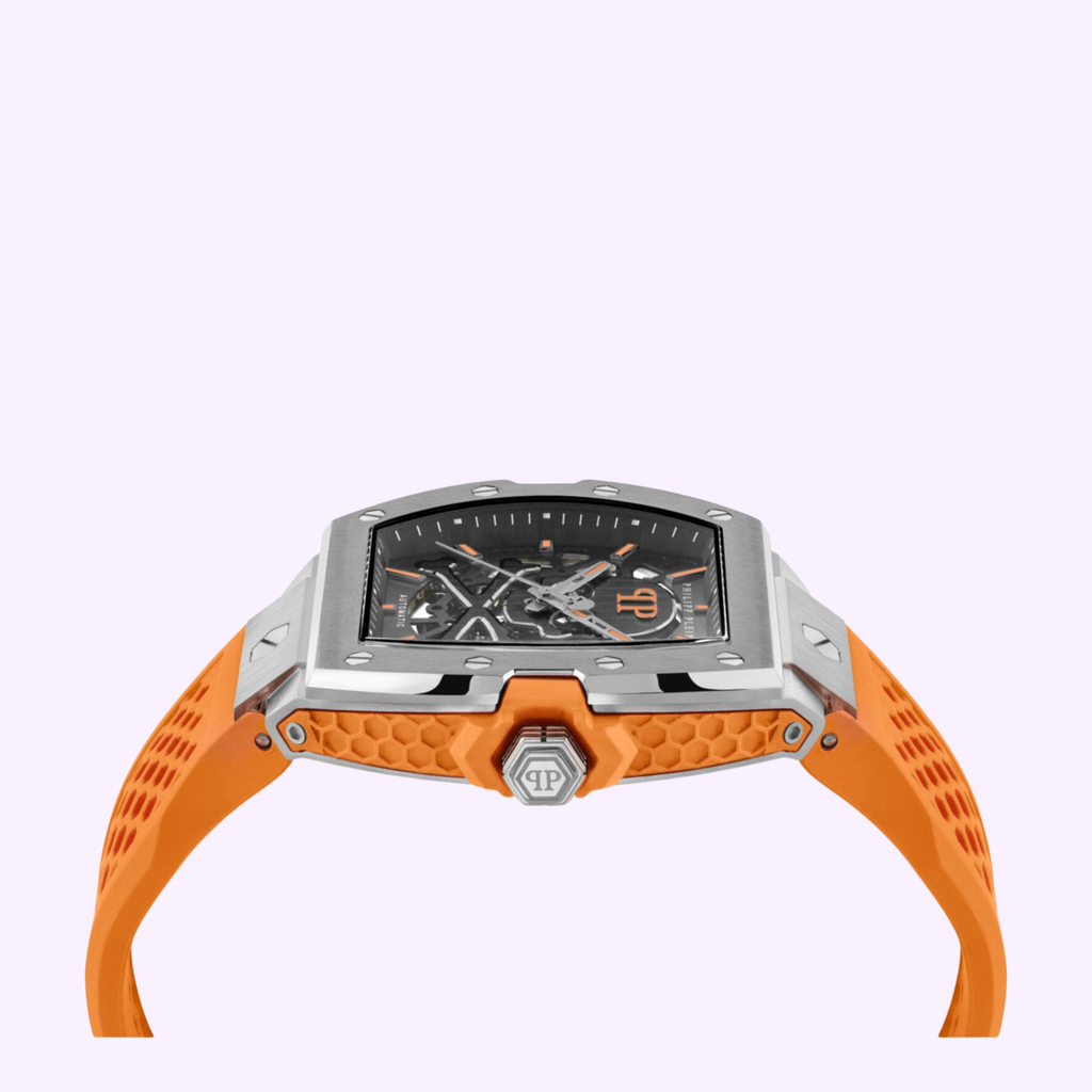 Time’s clicking, the new $keleton Limited Edition explodes with color. The bold orange silicone strap injects a vibrant energy into this iconic timepiece. Audacious, distinctive, and eye-catching, this timepiece is destined to become a bestseller. Dare to be Different.
