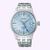 Presage Cocktail Time GMT. Offering the finest in Japanese mechanical watchmaking, the Presage Collection blends precision technology with superior craftsmanship and design. Inspired by the vibrance of the city’s modern lounges, the newest Cocktail Time designs express the excitement of today’s Tokyo, with fresh styling and colors. Evoking the Skydiving cocktail, the light blue dial features a deep pressed pattern with a lustrous gloss finish accented with a vibrant blue GMT hand designed in the shape of a cocktail glass, while beautifully displaying a cursive-style Arabic numeral 24-hour scale. The 24-jewel automatic GMT movement, visible through the screwdown see-through caseback, beats at a frequency of 21,600 vibrations per hour with a p+ower reserve of approximately 41 hours. Crafted of stainless steel, this distinctive timepiece includes a date calendar, box-shaped crystal, and deployment clasp with push button release. 5 bar, 50M Water Resistant