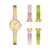 The Kira watch gift set includes three interchangeable bands, each detailed with our signature Ts. The delicate bracelets have a fold-over clasp to keep the watch secure and comfortable around the wrist.