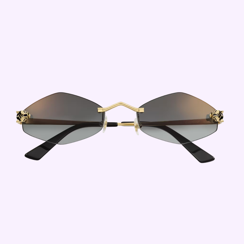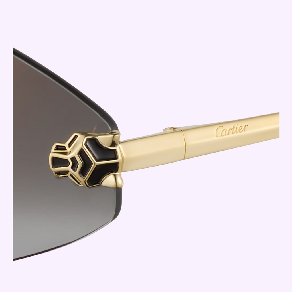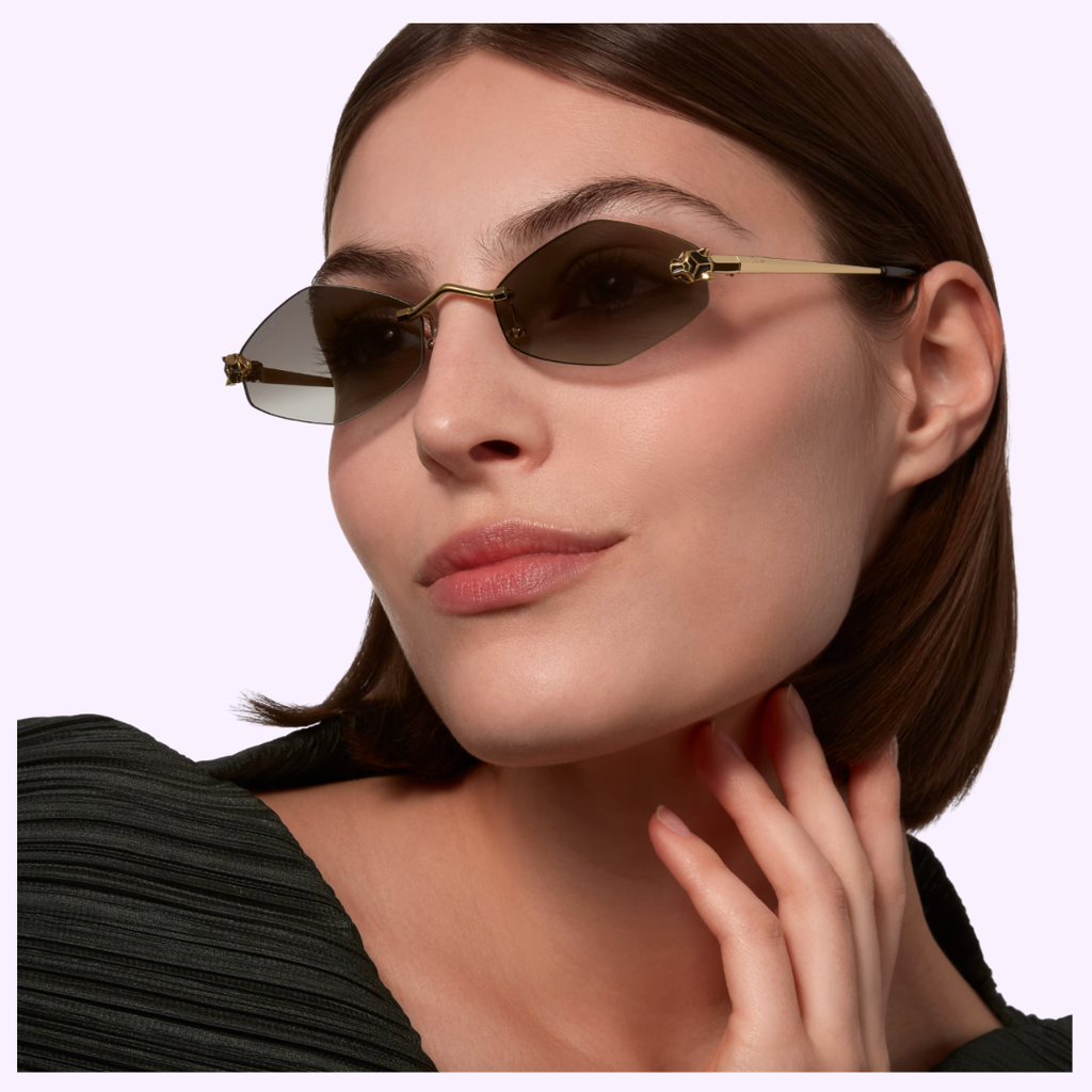 New contemporary and sophisticated temples in wood or horn enriched with the iconic C Décor detail as a functional element of the hinge. Narrow polygonal shape with faceted lenses in a rimless construction to ensure a modern and contemporary look. Cartier logo plaque on temple tips as elegant signature of the Maison. Precious finish in gold