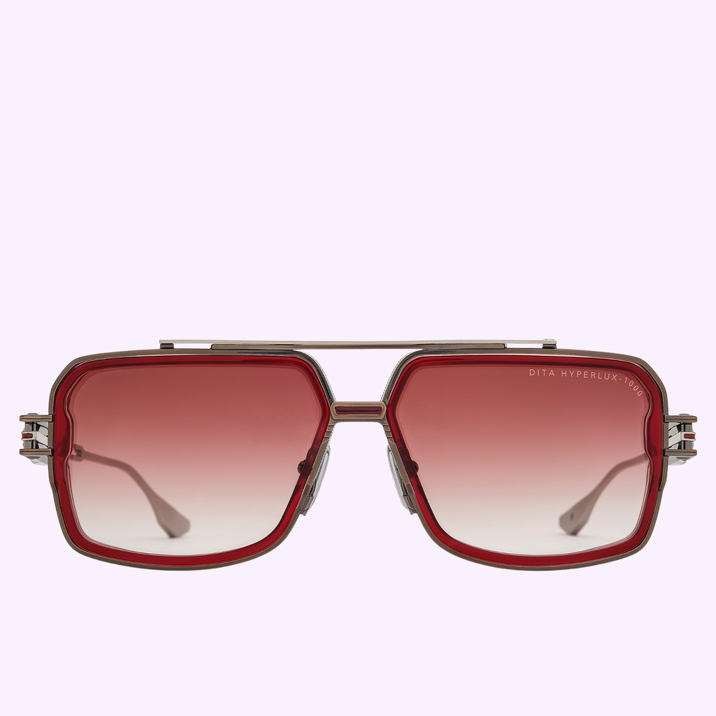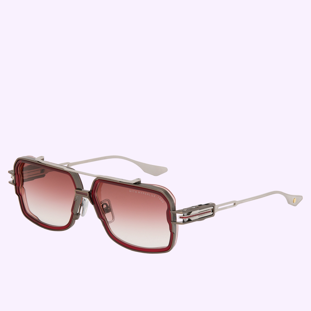 HYPERLUX-1000 redefines the navigator silhouette through a symphony of materials and sculptural complexity. A high-quality Japanese titanium frame with pressed line detailing and a multi-step profile forms the foundation, while a sculpted acetate lens rim with an extruded contour introduces dimension and depth.