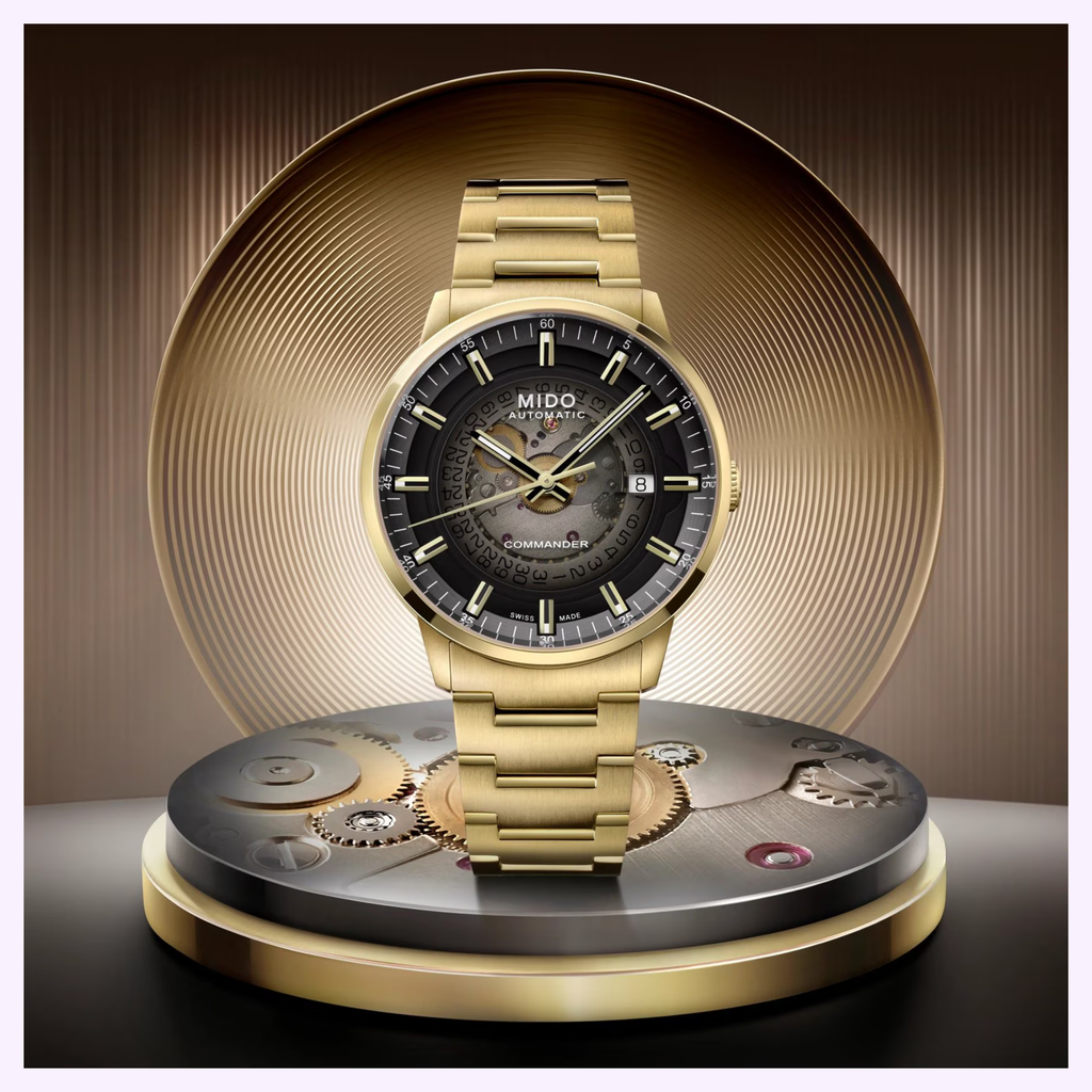 With the Commander Gradient Swiss watch, watchmaking mechanics become visible thanks to a transparent acrylic dial - a first in this iconic collection. The components of the Caliber 80 can be admired on the dial side as well as on the rear thanks to a transparent case back. Adorned with an original gradated smoky effect, the dial becomes increasingly opaque around the edges while the date at 3 o'clock stands out perfectly.