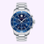 Movado Series 800, 42 mm Performance Steel case and bracelet with blue chronograph dial.