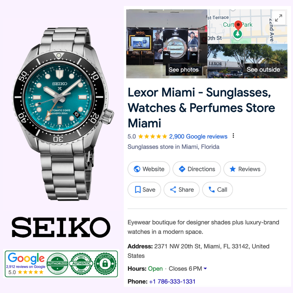 1968 Heritage Diver’s GMT U.S. Limited Edition. Designed for those who treat life as the ultimate adventure, the Seiko Prospex line meets every challenge with technological excellence and style. This extraordinary timepiece, available in a controlled production run of 500 pieces, honors Seiko’s landmark 1968 Diver’s Watch and showcases the brand’s first mechanical GMT movement created for diving, caliber 6R54. Extending the theme of duality with functionality in the sea and on land, the dramatic vertically gradated dial reflects the view from above and below the water. Providing a power reserve of approximately 72 hours, the longest of any Seiko mechanical watch, this 24-jewel automatic GMT movement beats at a frequency of 21,600 vibrations per hour and offers manual winding capability. The GMT hand can be set independently in one-hour increments, without interrupting the time-of-day hands, to provide a second time zone reading at a glance. Framed by a Made-in-Japan black ceramic uni-directional rotating elapsed timing bezel with a knurled edge for enhanced operability, the rich blue-green dial features a date calendar, bronze-tone GMT hand, and large LumiBrite markers and hands for enhanced legibility. Crafted of stainless steel with super-hard coating and following ISO standards for scuba diving to depths of up to 200 meters, this superbly functional timepiece includes an anti-reflective sapphire crystal, screwdown crown and caseback, three-link slim profile bracelet, and a tri-fold push button release clasp with secure lock and extender. 200m Water Resistant
