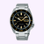 Seiko 5 Sports U.S. Special Creation. Adding new richness to classic sport/dress design, this stylish watch delivers all-day versatility with a cutting edge. Providing automatic technology that you control with every movement, this dynamic timepiece is powered by a 24-jewel movement that beats at a frequency of 21,600 vibrations per hour, with a power reserve of approximately 41 hours and manual winding capability. Framed by a gold uni-directional rotating elapsed timing bezel, the blue dial features luminous hands and markers, and a date/day calendar. Crafted of stainless steel in gold finish, this exceptional watch includes a tri-fold push button release clasp with lock, as well as a screwdown see-through caseback for a view of classic timekeeping in action. 10 bar, 100M Water Resistant