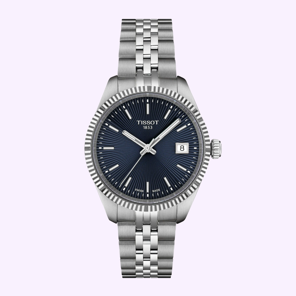 This watch is crafted to elevate your style for those truly special moments. The traditional guilloché dial with sunbeam rays reflects light beautifully, adding depth and elegance. The fluted bezel offers a sophisticated decoration representative of traditional watchmaking craftsmanship. The interchangeable quick-release bracelet offers maximum versatility, allowing you to easily change your look.
