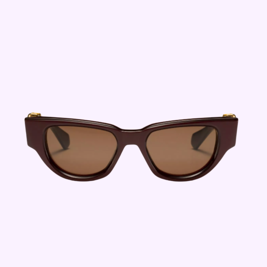 - Armação estilo olho de gato em acetato japonês esculpido em tom bordô.